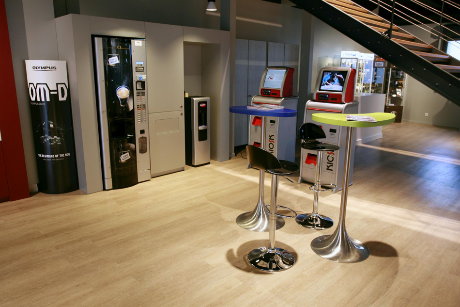 Deux bornes de tirage sont à votre disposition ainsi qu’une machine à café et un espace détente où vous trouverez, pour vous divertir, quelques numéros des derniers magazines photo.