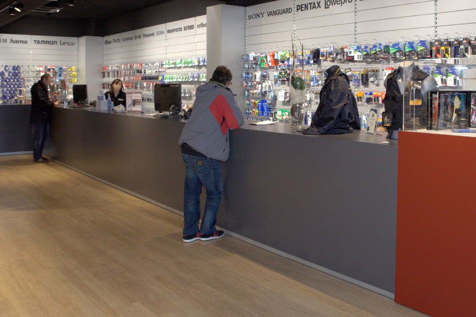 Un comptoir de 12 mètres derrière lequel vous retrouverez tous les accessoires nécessaires à la pratique de la photographie mais aussi des consommables pour vos impressions et toute une gamme d’accessoires d’entretien.