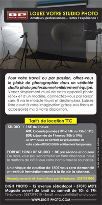 Unique en France avec une surface de plus de 600m², le magasin DIGIT PHOTO de Metz vous propose plus de 5000 références de matériels dédiés à la photographie et à la vidéo, mais aussi des services comme la possibilité de louer un studio photo équipé, de bénéficier de formations, ou encore d'exposer vos photographies.