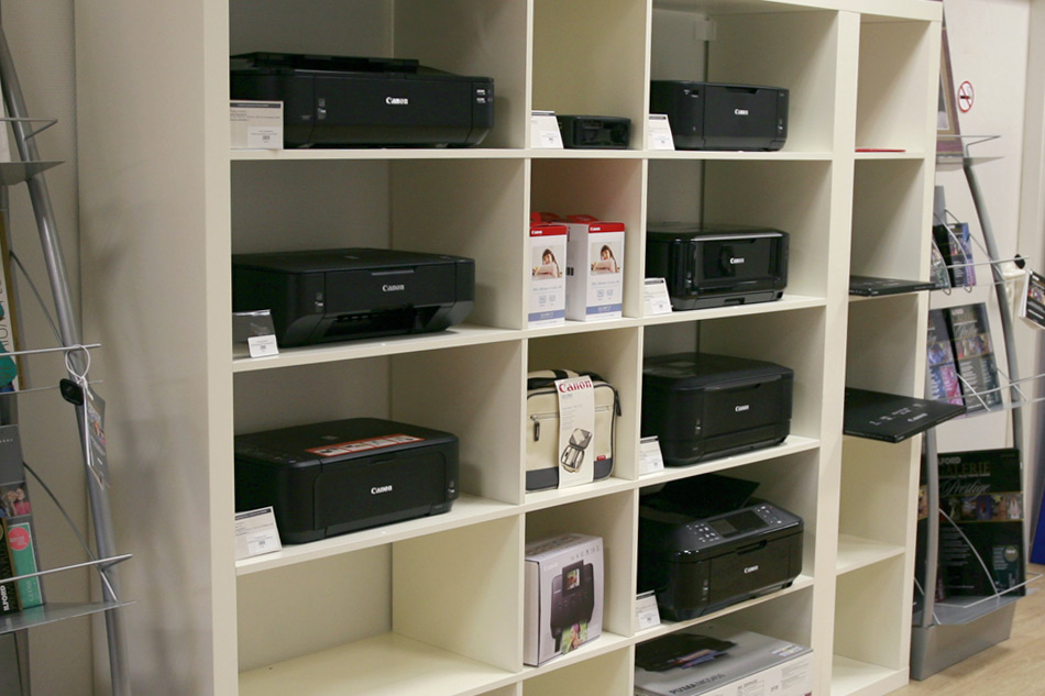 Jets d’encre A3, A3+, A4, thermiques ou lasers, photo ou multifonctions, les imprimantes des plus grand fabricants sont en vente au 1er étage.