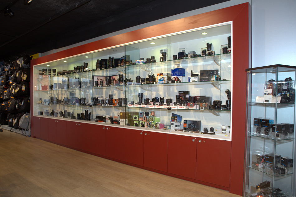 Une vitrine exceptionnelle comportant plus de 150 objectifs de toutes marques, allant des modèles d’entrée de gamme aux plus prestigieux ainsi que des boîtiers d’exception.
