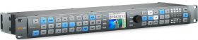 Com Teranex, todos os controles que você precisa estão na ponta de seus dedos. O monitor LCD incorporado permite-lhe navegar facilmente pelos menus e visualizar o formato da fonte, a taxa de fotogramas e o vídeo ao vivo. Portanto, não é necessário um monitor externo. Graças ao seu painel frontal metálico maquinado elegante, ao tamanho compacto do rack e à fonte de alimentação universal integrada, os conversores Teranex adaptam-se perfeitamente ao seu estúdio. Também são perfeitos para racks portáteis e carrinhas OB.
