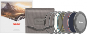 O kit ND profissional Kase KW Revolution inclui filtros magnéticos ND8, ND64, ND1000 e CPL como parte do sistema de filtros Kase KW Revolution com código de cores. Os filtros foram concebidos com molduras de filtro com código de cores para facilitar a identificação e a troca. O ND8 tem um código azul, o ND64 é amarelo, o ND1000 é vermelho e o CPL é prateado. O kit também inclui anéis adaptadores, uma caixa de filtro e uma tampa frontal da objetiva. O sistema KW Revolution baseia-se na anterior série Wolverine da Kase e é totalmente compatível com os filtros Wolverine.