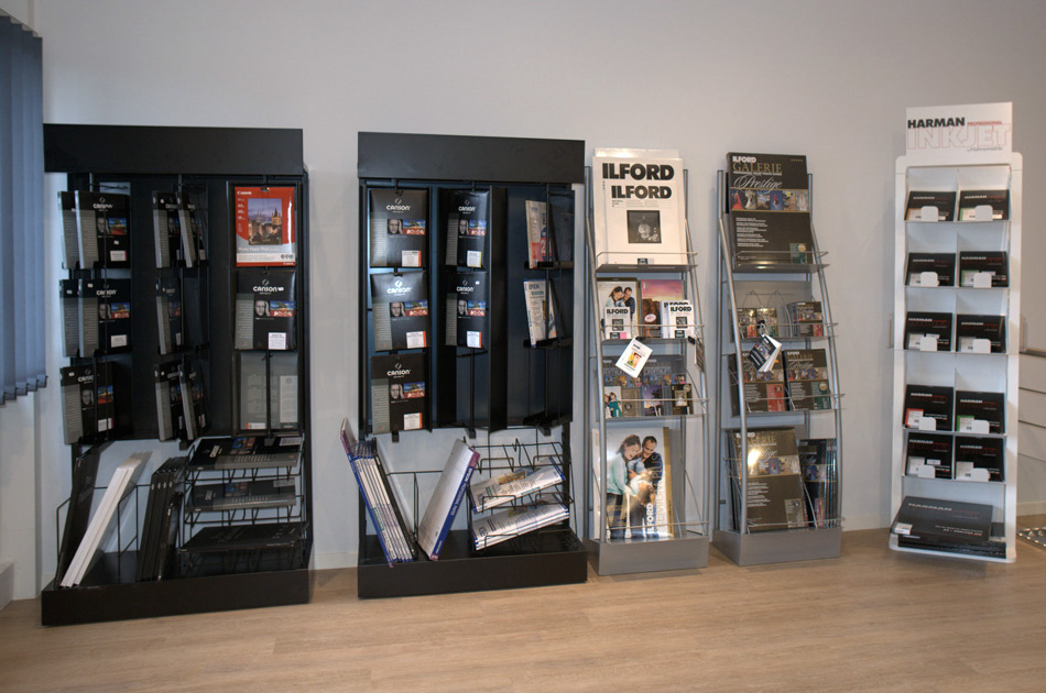 Un vaste espace est dédié aux marques de papiers pour vos tirages jet d’encre. Tous les types et formats y sont représentés.