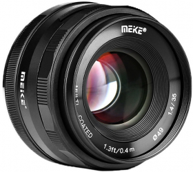Distância focal fixa de 35 mm, objectiva de grande ângulo. A abertura máxima de 1,4 a 16 proporciona um efeito de bokeh suave, adequado para retrato ou fotografia de grande plano.
