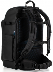Arnês de fluxo de ar com cintas de esterno duplo - O Arnês de fluxo de ar combina uma grelha de ventilação 3D com as cintas Pivot-Fit™ auto-ajustáveis da Tenba para assegurar um ajuste confortável. As cintas únicas de esterno duplo melhoram significativamente o equilíbrio da carga no peito, com benefícios significativos tanto para os clientes femininos como para os masculinos. A cinta inferior do esterno pode ser removida, se desejado. O painel traseiro também inclui uma alça de carrinho para transporte seguro nos aeroportos.
