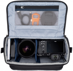 - Bolsa concebida para uma câmara DSLR ou mirrorless com objectiva + 2 ou 3 objectivas adicionais